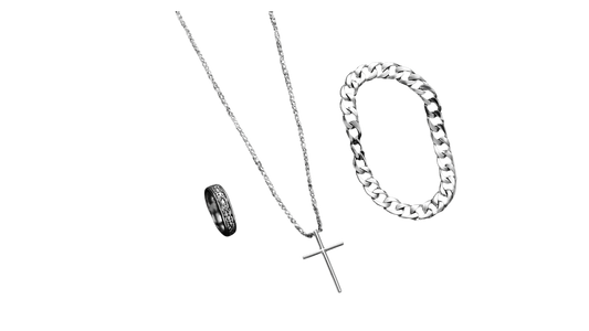 🛡️ Iron Sentinel – 3-Piece Stainless Steel Cross Jewelry Set: Necklace, Bracelet & Ring 🚀...